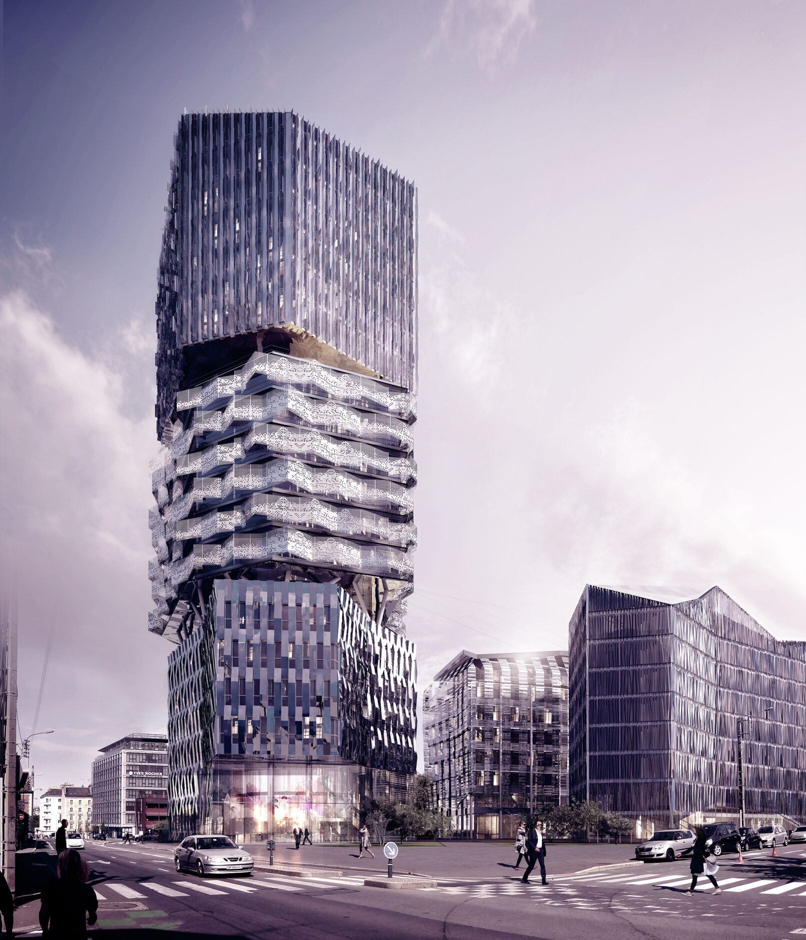 Une tour signal imaginée sur l’îlot Féval de Rennes.