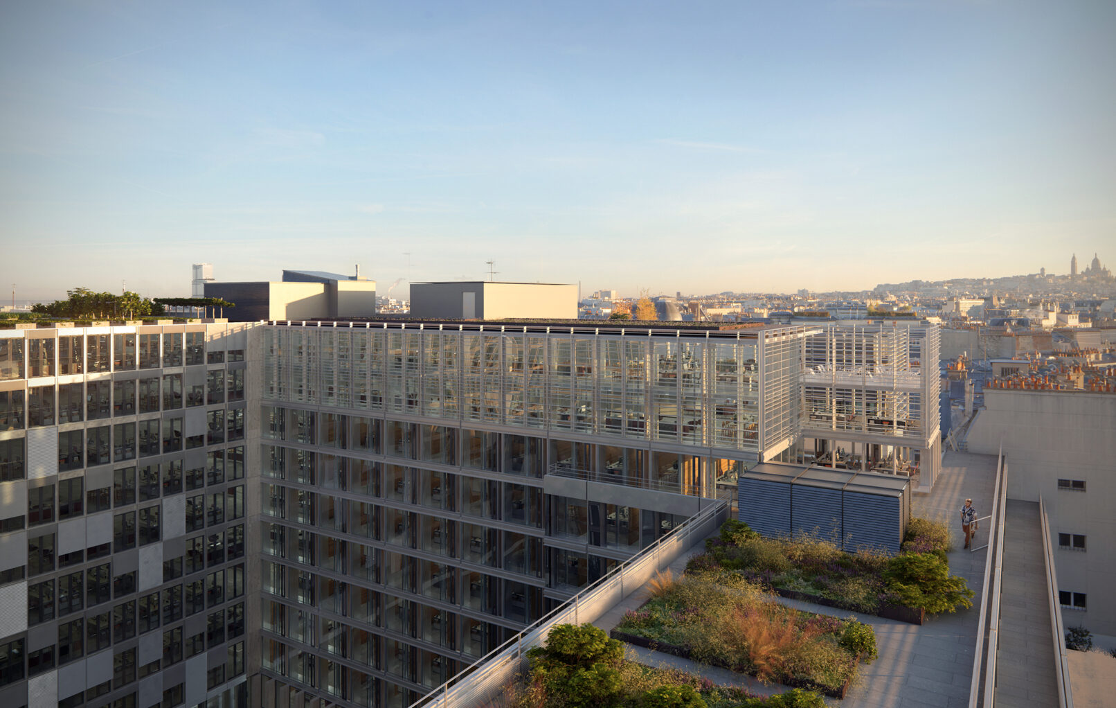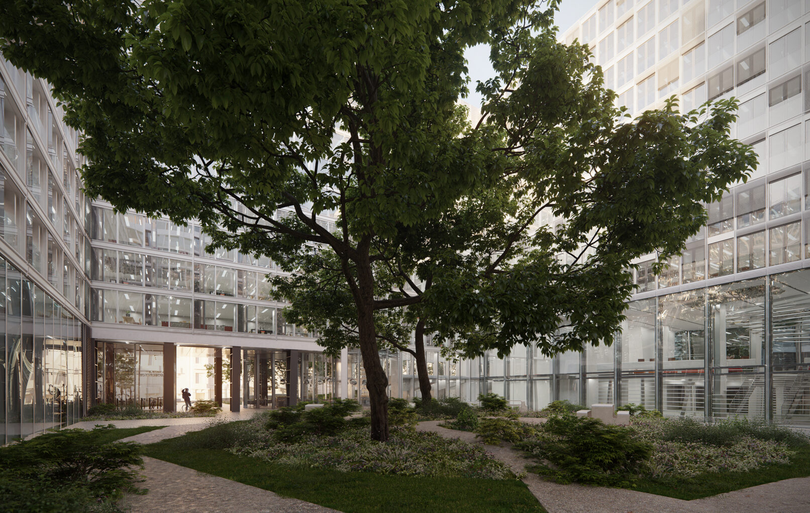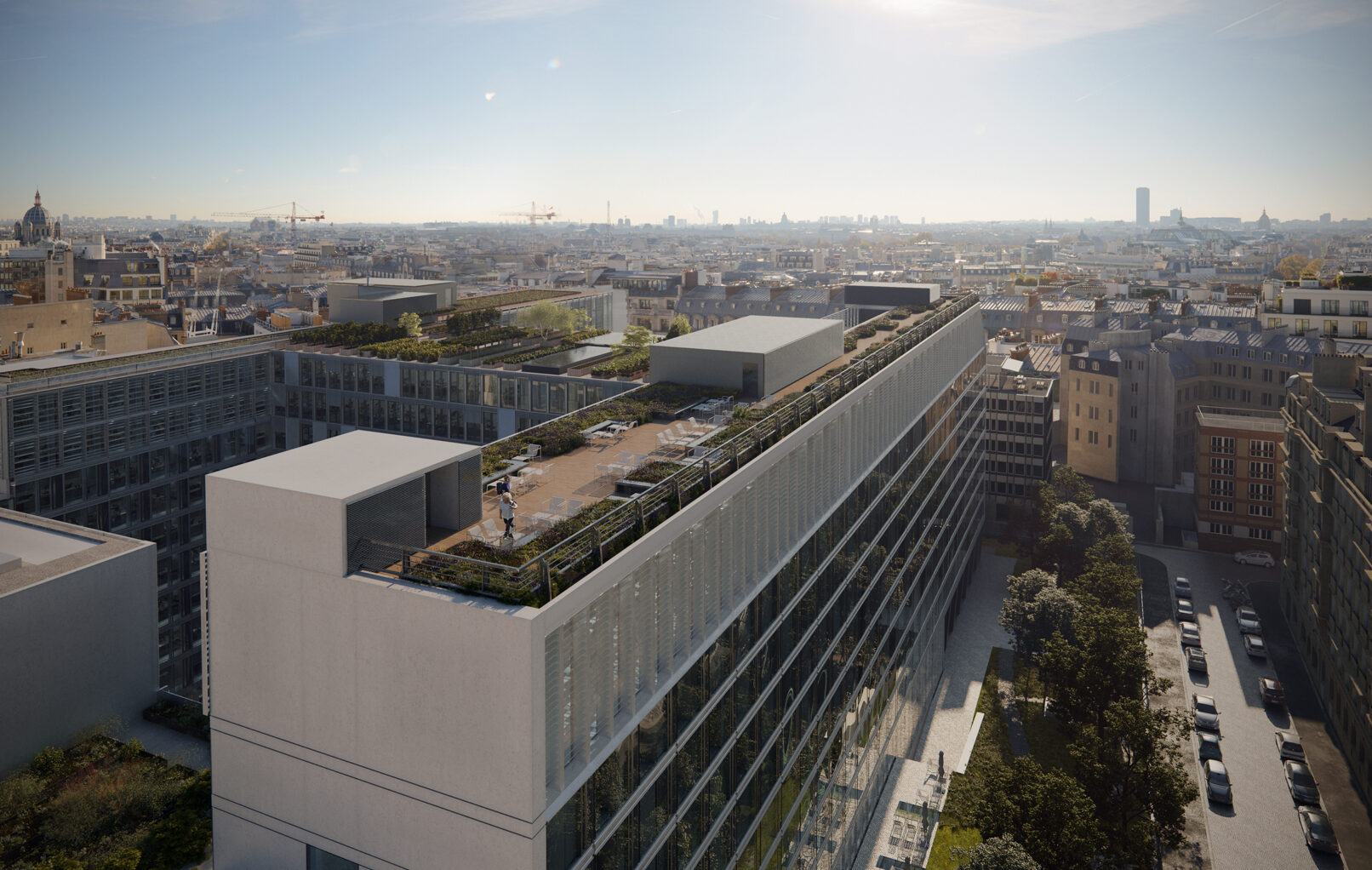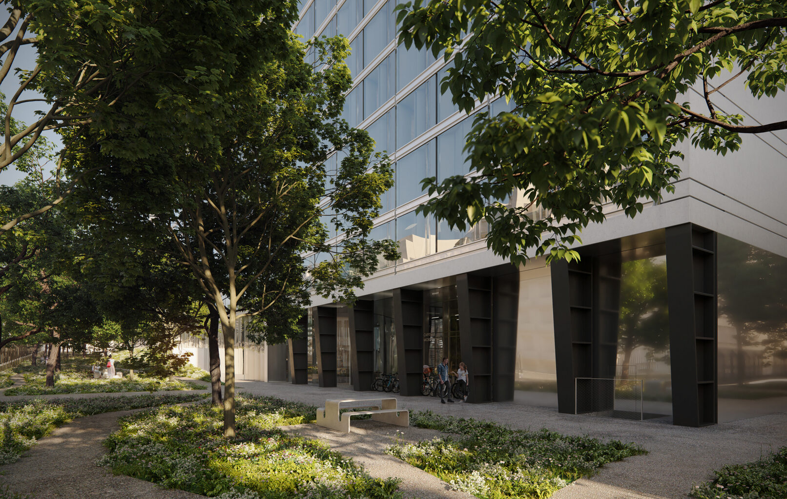 Un élégant travail de redéfinition des façades sur un développé de 18000 m², qui s’attache à trouver de nouvelles proportions pour chaque bâtiment.