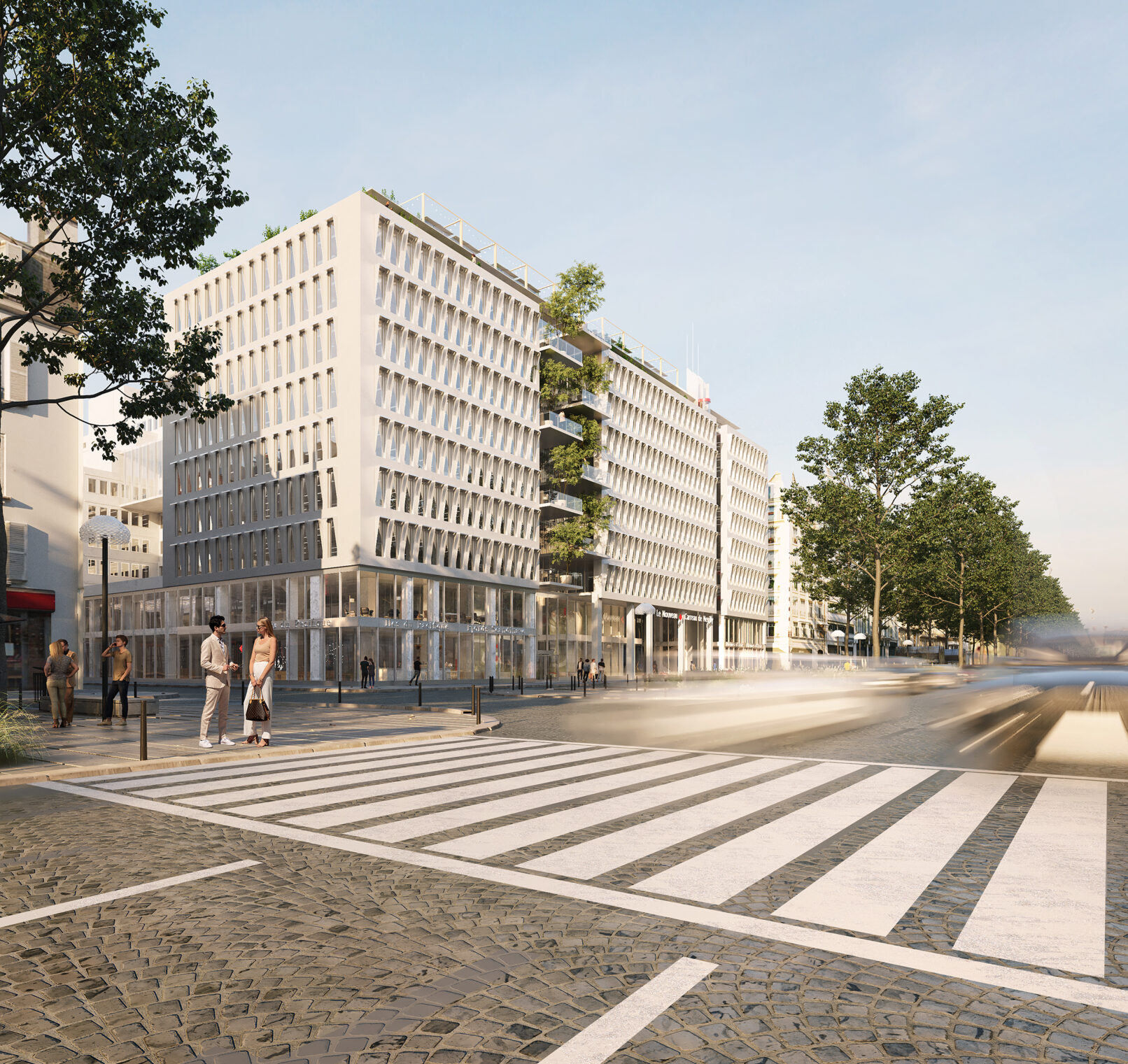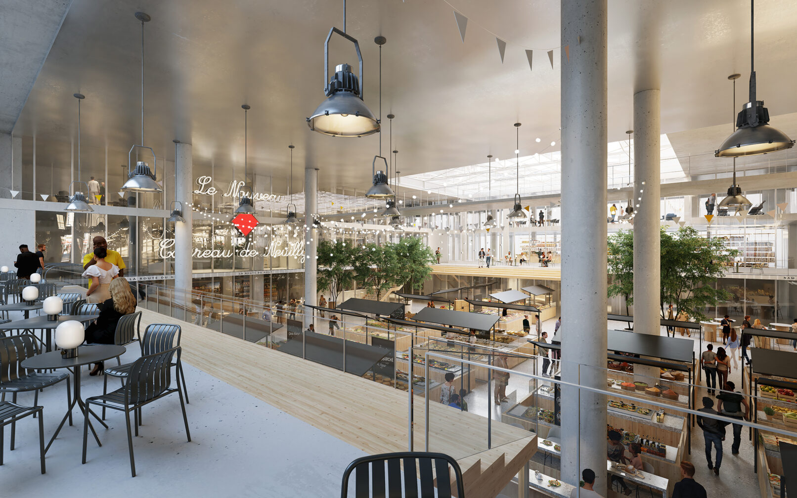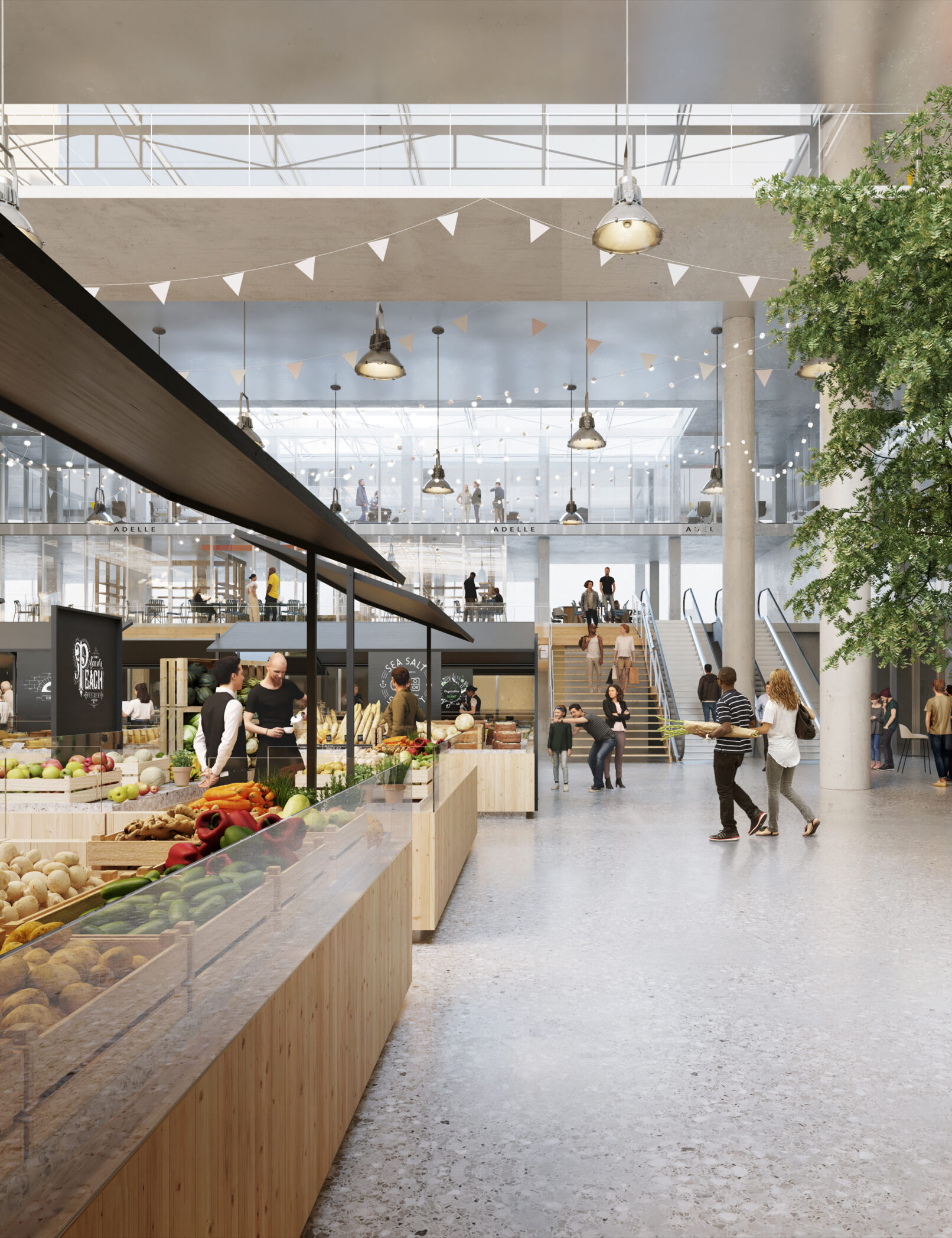 Faire le choix d’une mixité des usages et de la lumière naturelle, entre le marché de la Ville et les bureaux, pour une restructuration résiliente et pérenne.