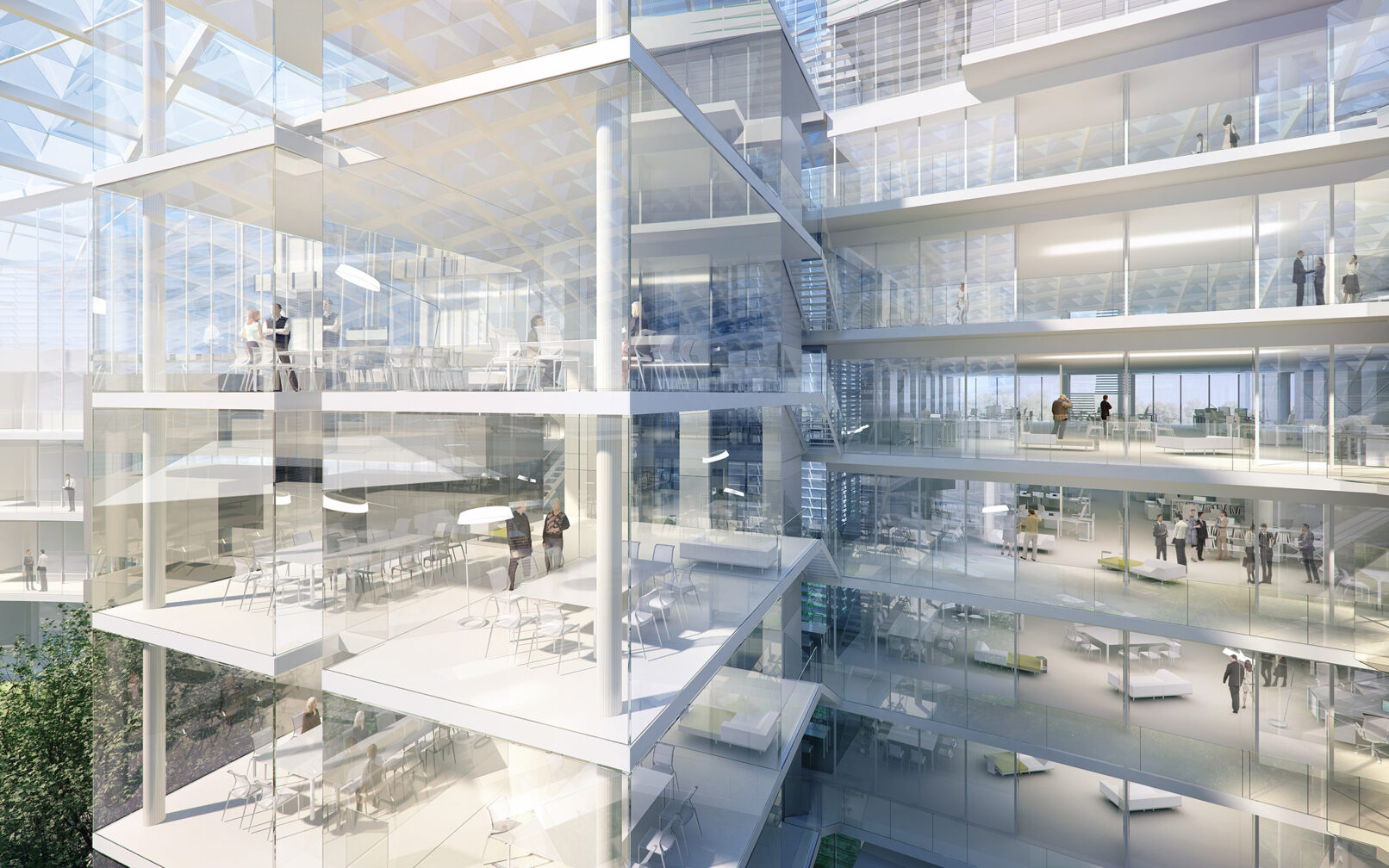 Un espace bioclimatique recouvert d’une lentille composée de pyramidions vitrés qui interagissent avec la lumière.