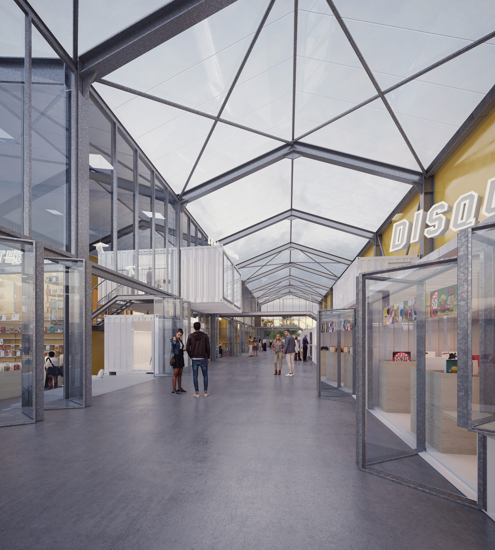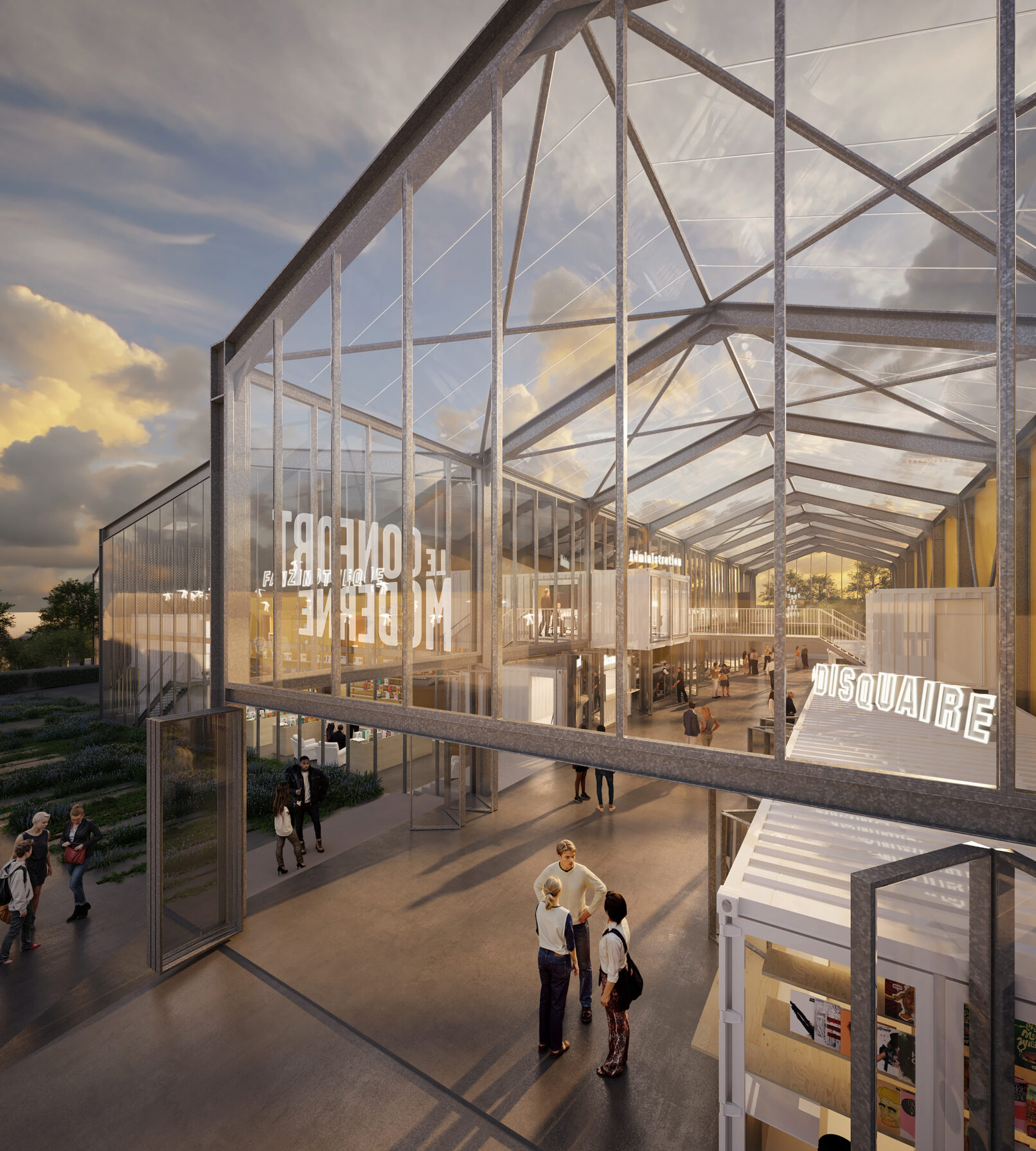 La réhabilitation du Confort Moderne s’appuie sur le choix de coiffer ses bâtiments de «nefs» à la transparence variable afin d’en améliorer usages et fonctionnalités.