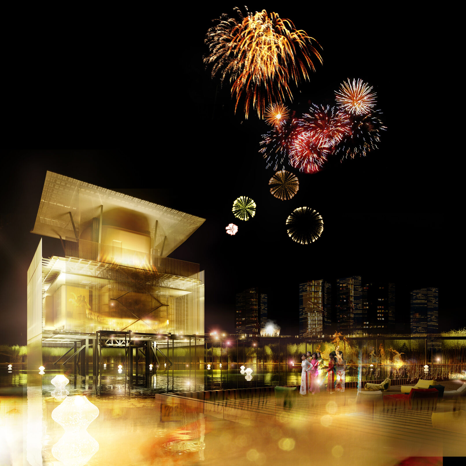 Un ouvrage inspiré des voiles rouges du firmament de la baie d’Halong, un point lumineux sur un ciel sombre, une œuvre d’art contemporain.
