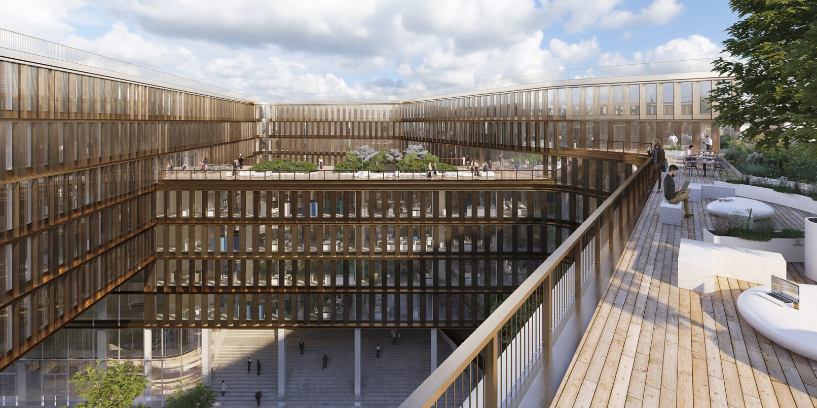 Un projet à la puissance tranquille qui se distingue par un jeu de formes souples, dont les courbes génèrent des vues et des situations urbaines surprenantes. / ChartierDalix