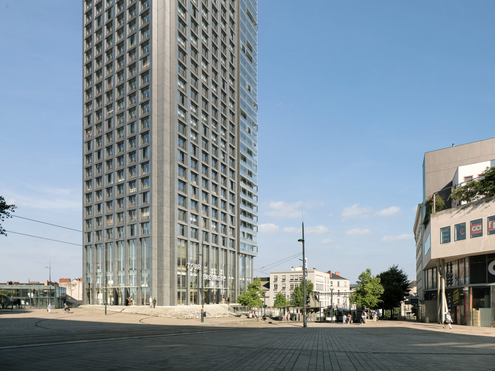 Le projet de transformation de la Tour est l’occasion de la reconnecter au cœur de la ville grâce à une mixité dans sa programmation et ses usages, en maintenant une accessibilité grand public au sommet de la Tour, et grâce à l’animation du socle -dans sa partie basse et sa partie haute- et de trait d’union entre la place de Bretagne et la place du Cirque.